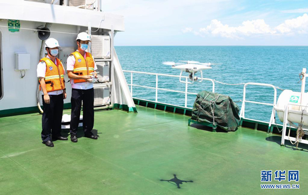 8月16日,海南海事部門工作人員在“海巡1102”輪上使用無人機(jī)查看瓊州海峽通航情況。據(jù)了解,為保障數(shù)萬艘漁船集中通過瓊州海峽出海作業(yè),海南海事、農(nóng)業(yè)、綜合執(zhí)法等部門聯(lián)合開展巡航執(zhí)法行動(dòng),共同護(hù)航開漁安全。