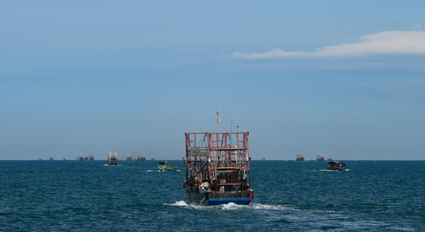 當(dāng)日中午12時(shí),為期三個(gè)半月的中國(guó)南海伏季休漁期結(jié)束,漁船陸續(xù)出海,前往目的地作業(yè)。