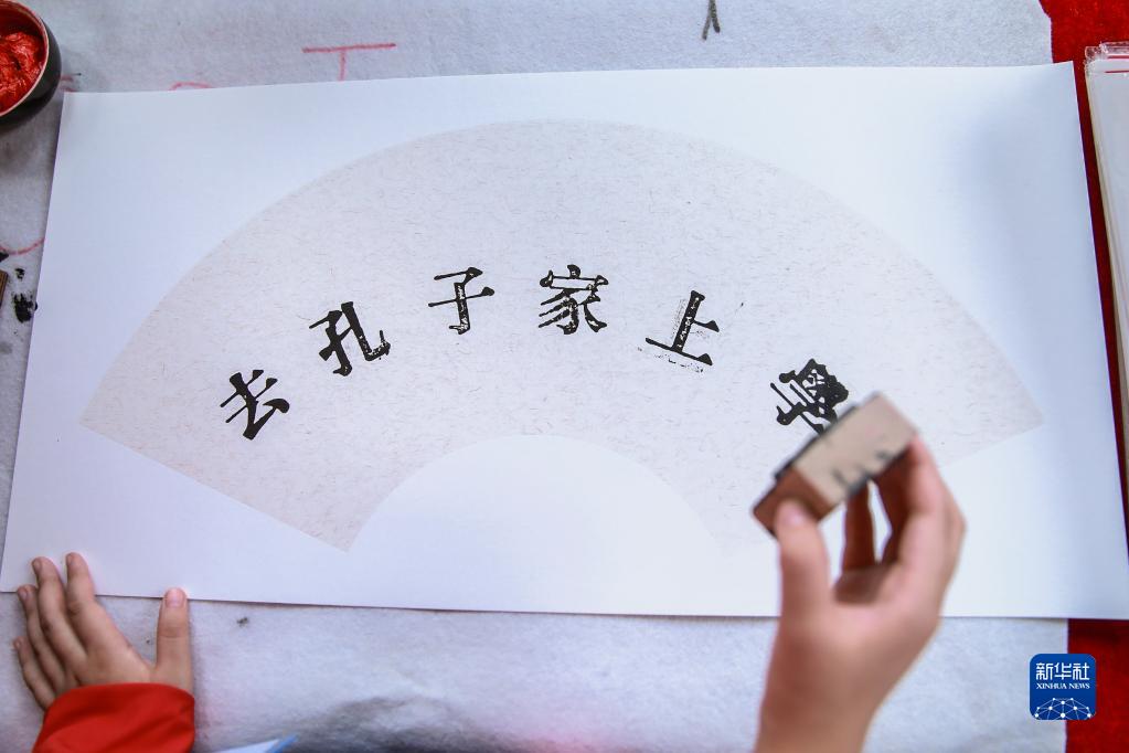 9月25日,滬臺學子在活動上體驗拓印。新華社發(fā)