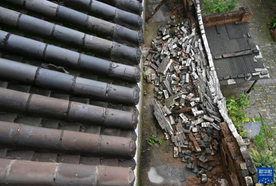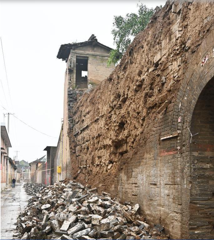 全國重點(diǎn)文物保護(hù)單位山西省汾城古建筑群的社稷廟院墻部分倒塌(10月12日攝)。