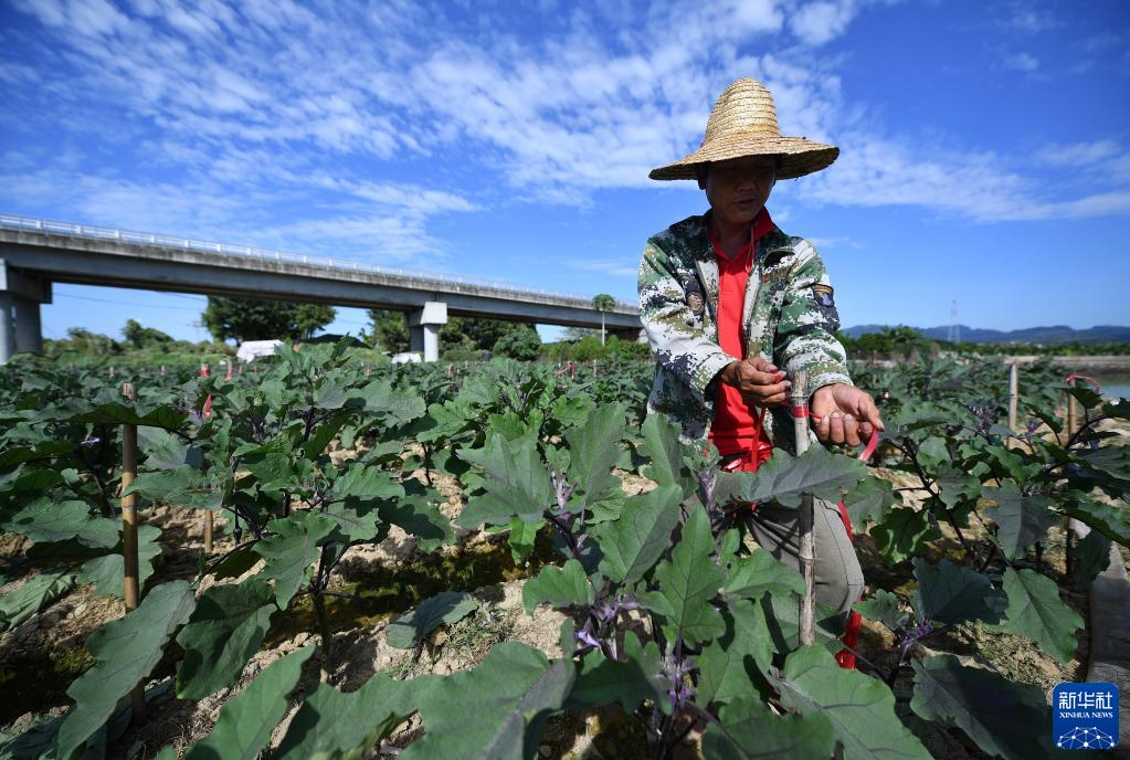 11月16日,三亞市崖州區(qū)的農(nóng)民在管護(hù)茄子田。