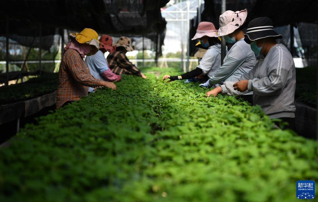 11月16日,工作人員在三亞市熱帶農(nóng)業(yè)科學(xué)研究院育苗大棚中分揀青瓜苗。新華社記者 郭程 攝