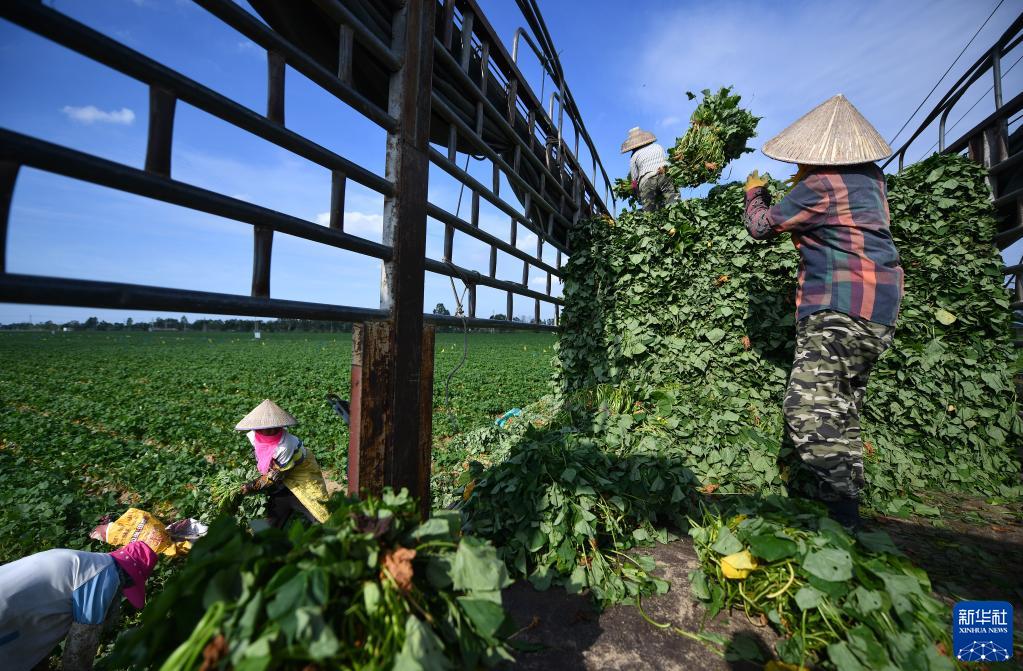 11月15日,東方市四更鎮(zhèn)沙村的農(nóng)民將地瓜苗裝車(chē)。新華社記者 郭程 攝