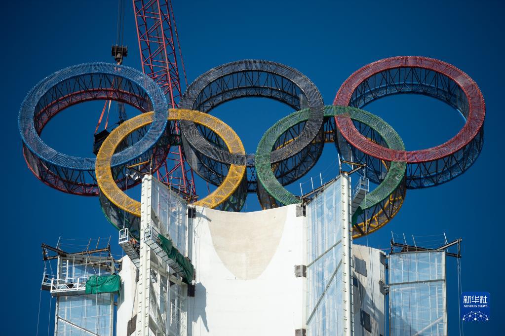 近日,位于北京冬奧會(huì)延慶賽區(qū)的“海陀塔”上的奧運(yùn)五環(huán)結(jié)構(gòu)吊裝作業(yè)完成,進(jìn)入工程收尾階段。塔頂設(shè)置奧運(yùn)五環(huán)標(biāo)志,表面安裝了共計(jì)7萬余個(gè)白色點(diǎn)光源,塔身加裝飄帶形裝飾。