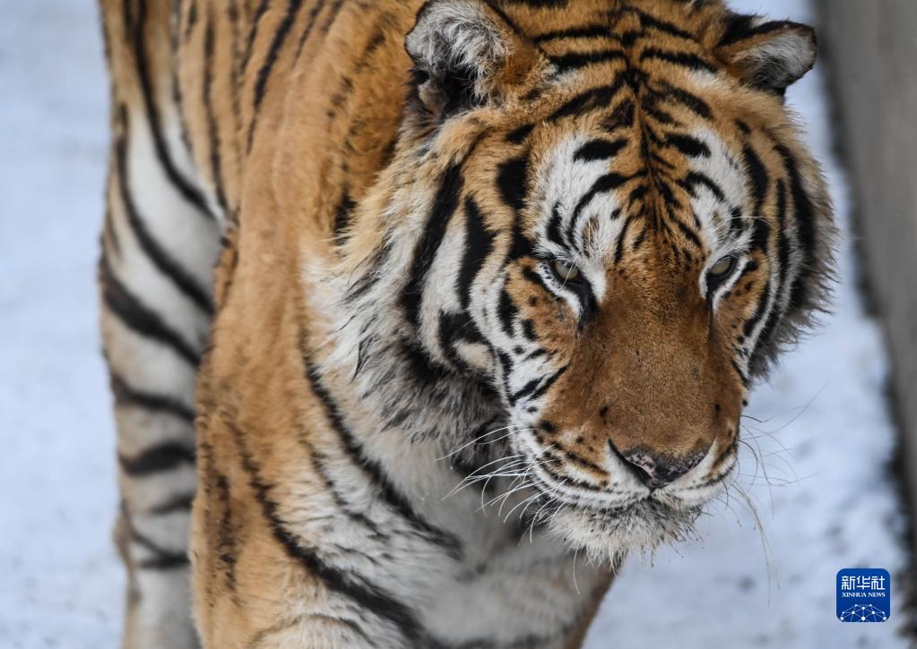 冬季里,在位于吉林長春的東北虎園內(nèi),東北虎享受愜意生活。