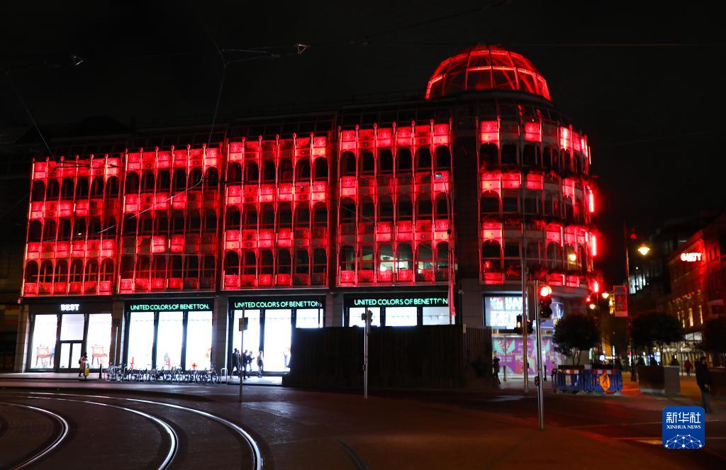 這是1月28日在愛爾蘭都柏林拍攝的點(diǎn)亮“中國紅”的一處購物中心。從1月28日至2月1日,都柏林各主要標(biāo)志性建筑將點(diǎn)亮“中國紅”,慶祝中國農(nóng)歷新年。