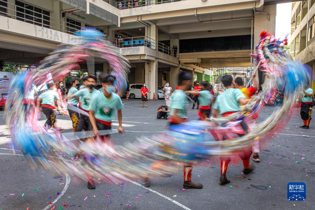1月27日,演員們在泰國曼谷表演舞龍舞獅,迎接新春佳節(jié)到來。