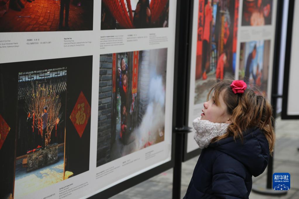 1月28日,一名小女孩在保加利亞索非亞市觀看《中國春節(jié)文化圖片展》。由中華人民共和國文化和旅游部、中國駐保加利亞大使館主辦的2022年“歡樂春節(jié)”《中國春節(jié)文化圖片展》于當(dāng)日在索非亞市斯拉維伊科夫廣場開幕,展期持續(xù)21天。