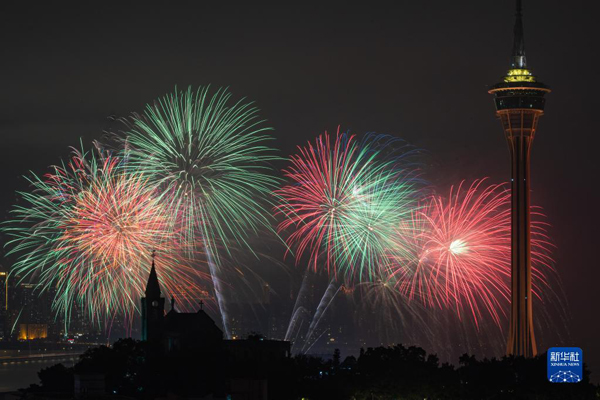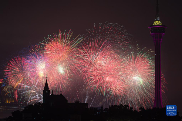 2月7日晚,澳門特區(qū)旅游局在旅游塔對(duì)開海面舉行新春煙花表演。新華社記者 張金加 攝