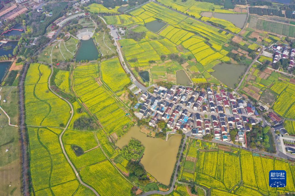 近日,江蘇省南京市高淳區(qū)椏溪國際慢城的萬畝油菜花進入盛花期。金色的花海與民居、茶園相映成趣,構(gòu)成美麗的春日畫卷。