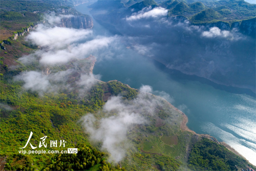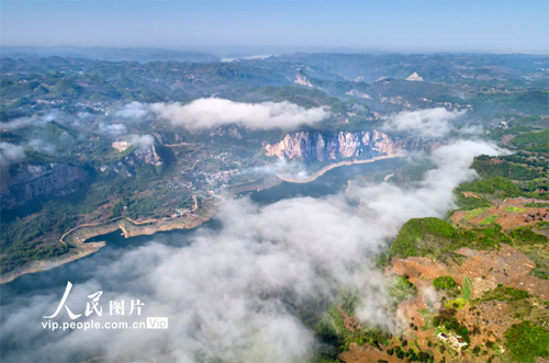 2022年4月3日,貴州省黔西市新仁苗族鄉(xiāng)化屋村雨后初霽,壯麗的山川、秀美的六沖河,連同峽谷中飄動(dòng)的晨霧,構(gòu)成一幅美麗的烏江源春日畫(huà)卷。