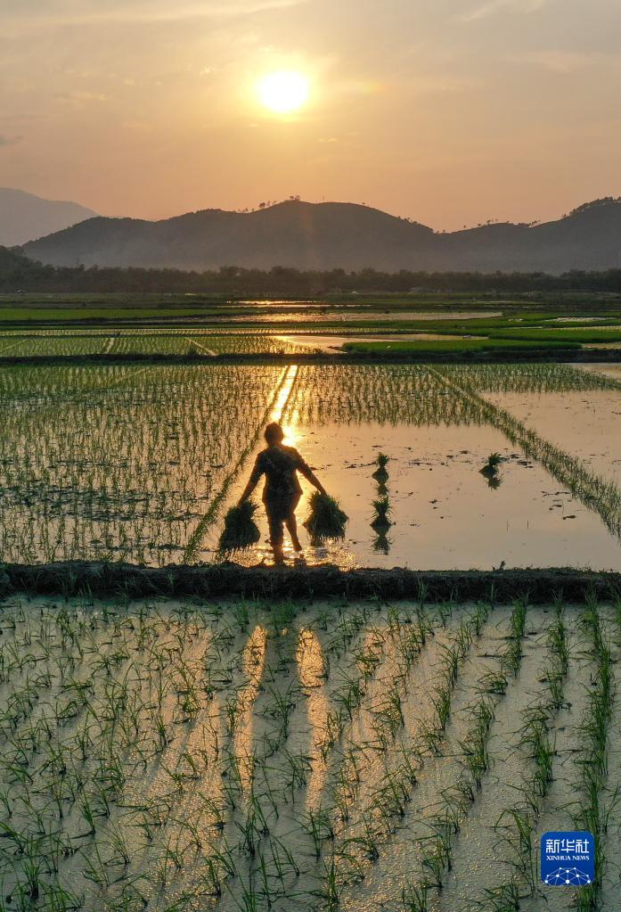 5月5日,在湖南省永州市道縣營江街道白地頭社區(qū),農(nóng)民在田間勞作。