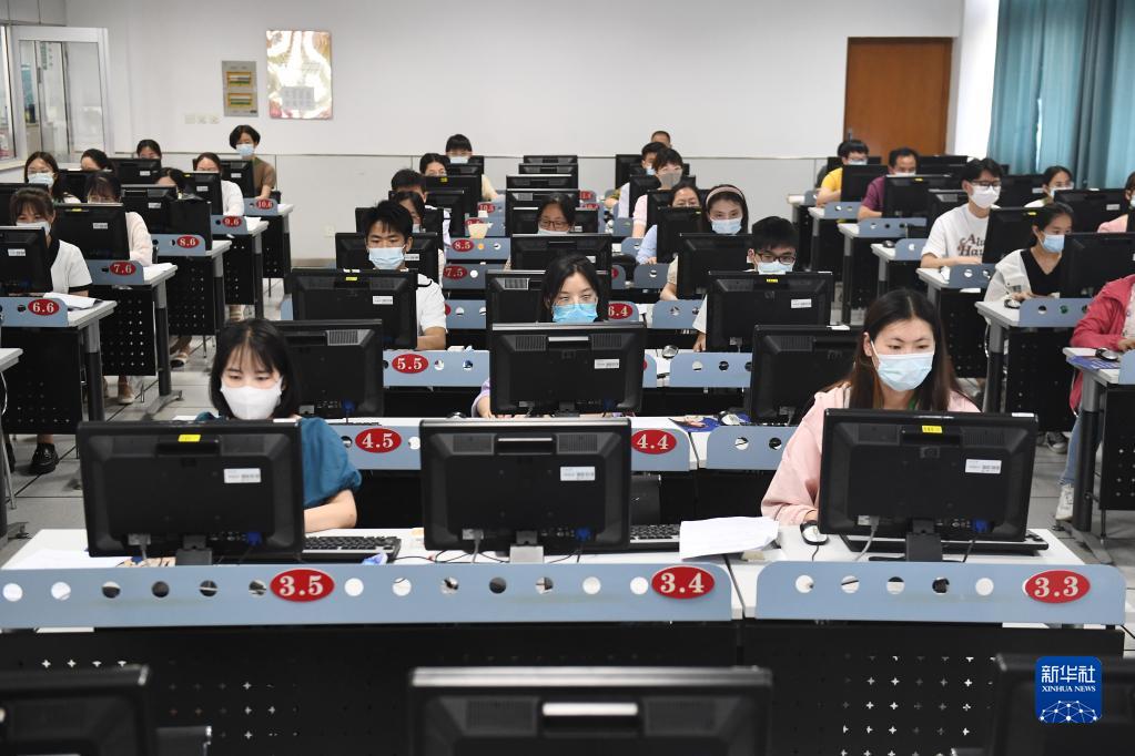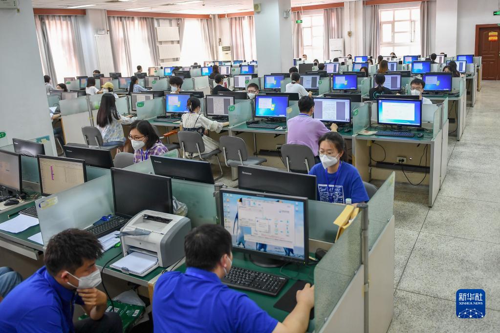 6月14日,在位于吉林長(zhǎng)春的東北師范大學(xué)高考網(wǎng)上評(píng)卷點(diǎn),工作人員在評(píng)卷。據(jù)了解,2022年吉林省高考評(píng)卷工作全部采用電子掃描、網(wǎng)上評(píng)卷方式進(jìn)行。