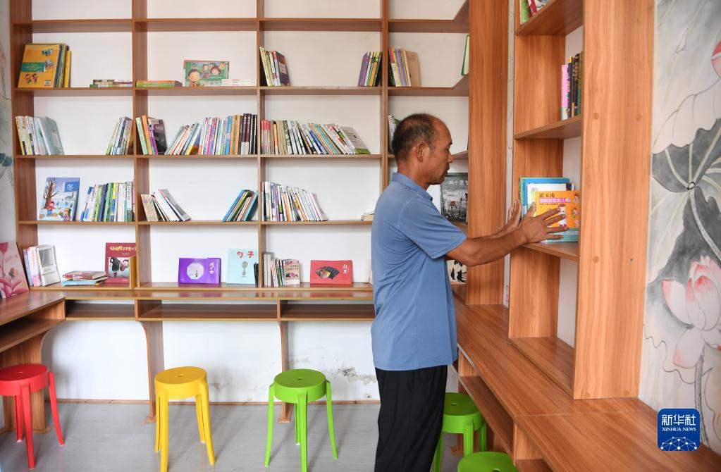 7月27日,在河南新鄉(xiāng)長(zhǎng)垣市丁欒鎮(zhèn)官路西村,管理員在農(nóng)家書屋整理書籍。