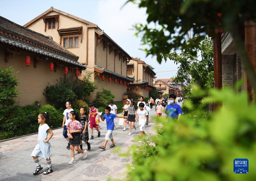 7月27日,小朋友在河南新鄉(xiāng)長(zhǎng)垣市丁欒鎮(zhèn)官路西村參觀研學(xué)。