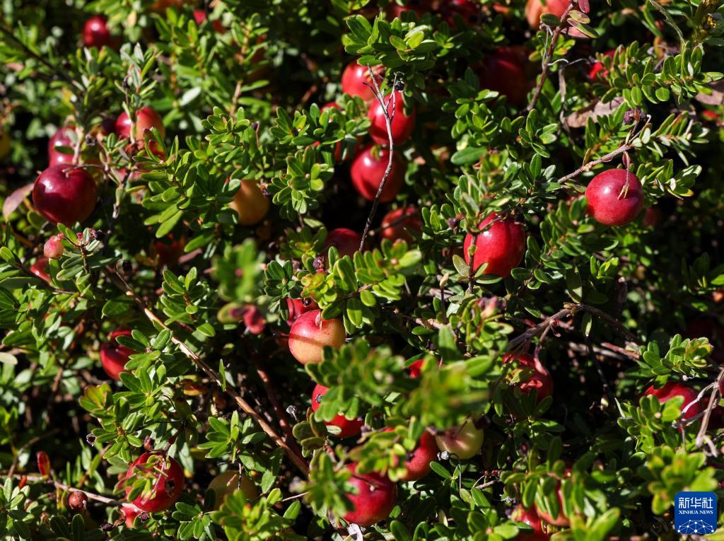 這是9月4日在撫遠(yuǎn)市紅海植業(yè)有限公司蔓越莓種植基地內(nèi)拍攝的成熟的蔓越莓。