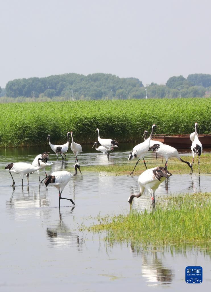 這是黑龍江扎龍國家級自然保護區(qū)的丹頂鶴(2022年6月15日攝)。 新華社發(fā)(宋燕軍 攝)