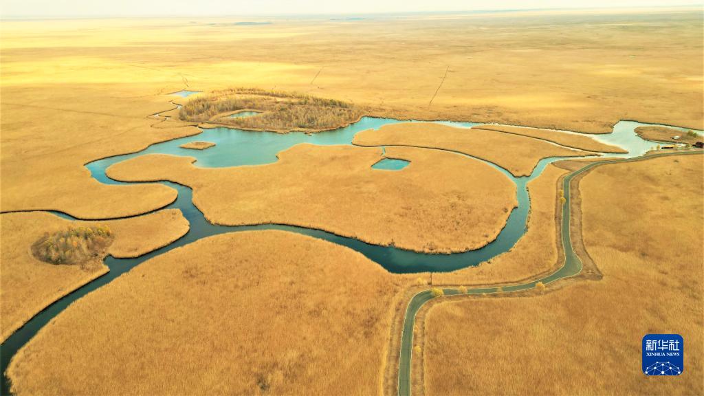 這是黑龍江扎龍國家級自然保護區(qū)秋景(2022年10月21日攝,無人機照片)。