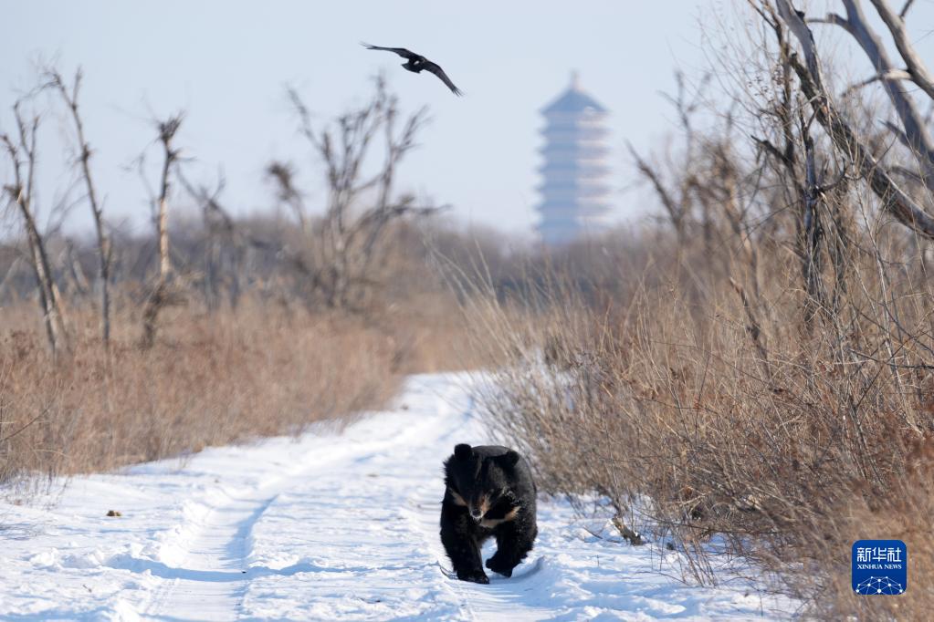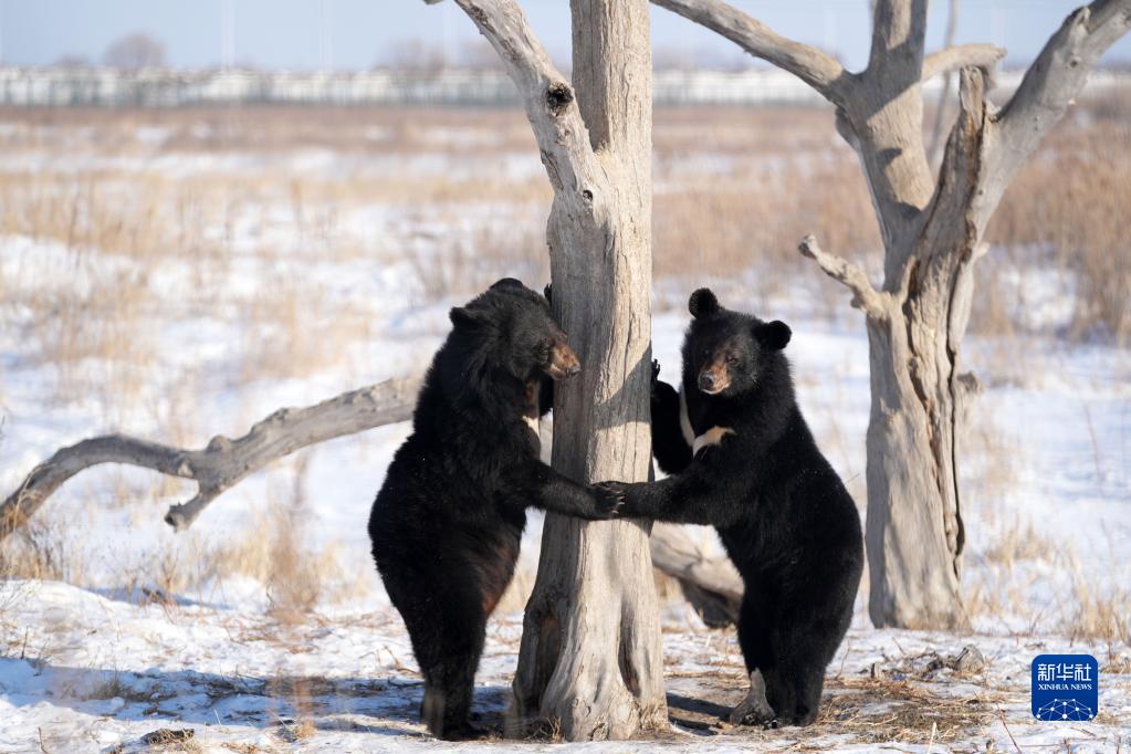 1月10日,黑熊在“探秘野熊園”內(nèi)活動(dòng)。