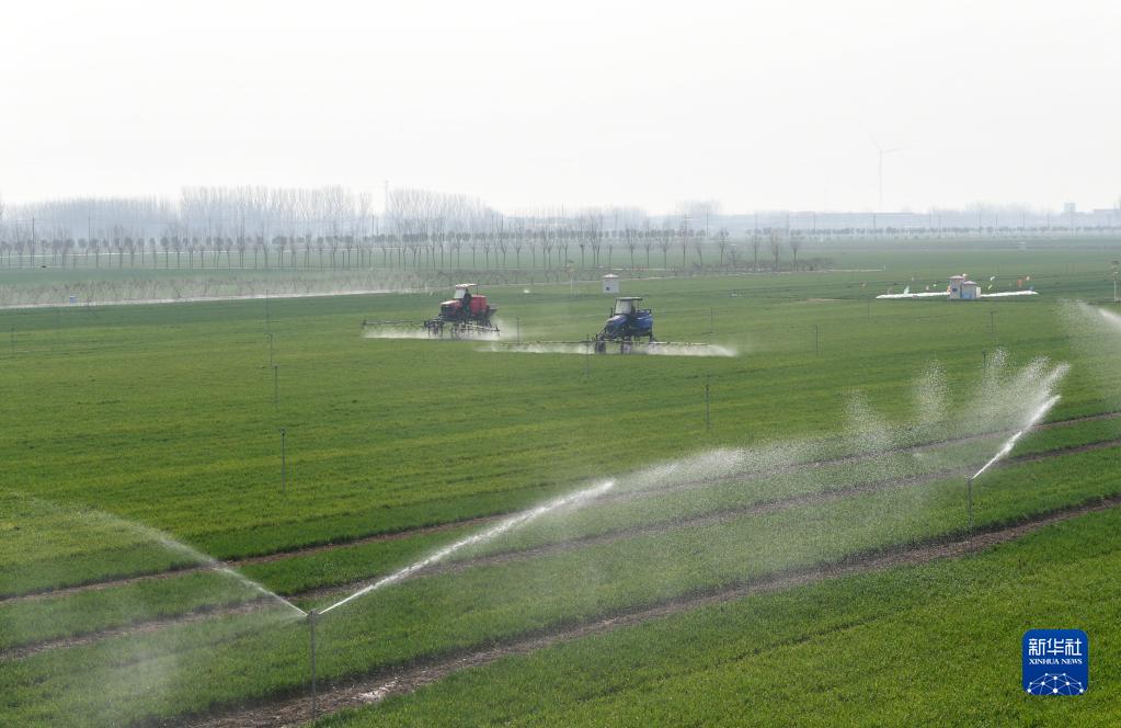 春耕時(shí)節(jié),河南各地小麥主產(chǎn)區(qū)農(nóng)民抓緊農(nóng)時(shí),給小麥澆灌、施肥、病蟲(chóng)害監(jiān)測(cè)等田間管理,一派繁忙景象。