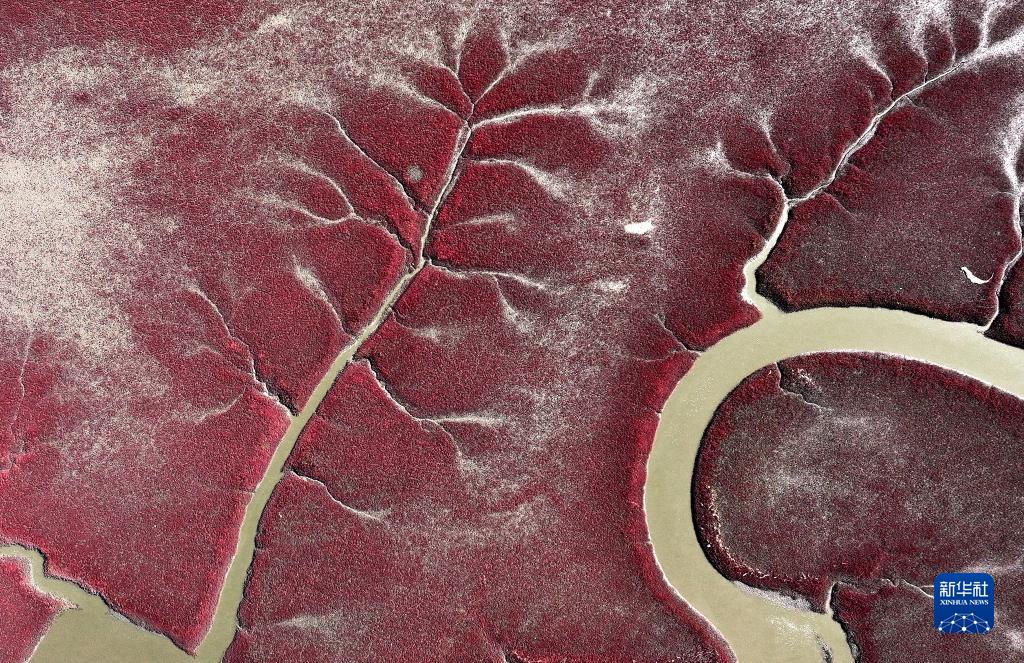 近日,遼寧省盤錦紅海灘國家風(fēng)景廊道內(nèi)的堿蓬草迎來最佳觀賞期,吸引了眾多游客前來觀賞游玩。