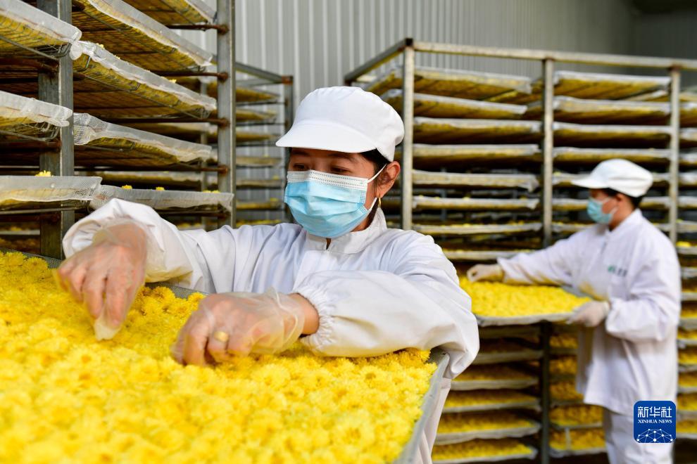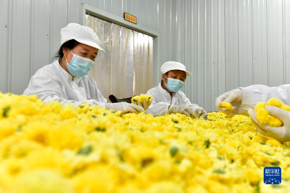 11月4日,在位于嘉祥縣的山東朵云清農(nóng)業(yè)股份有限公司,工作人員在加工有機(jī)菊花。