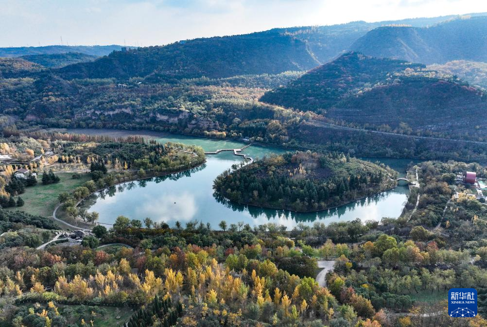 11月14日在河南省焦作市溫縣子夏公園拍攝的景色(無人機照片)。