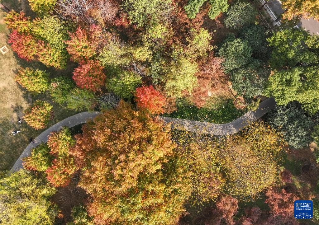 11月14日,游人在武漢市東湖風景區(qū)游覽(無人機照片)。