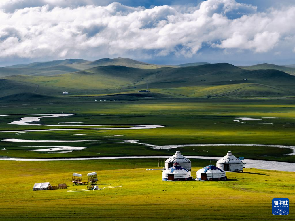 9月14日拍攝的內(nèi)蒙古呼倫貝爾市陳巴爾虎旗草原上的莫爾格勒河(無人機照片)。