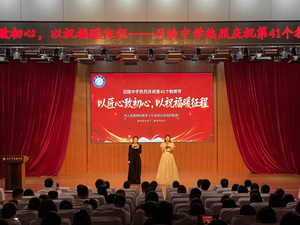 丹桂飄香滿校園,師恩如歌潤心田。2025年9月10日下午,召陵中學慶祝第41個教師節(jié)表彰大會在報告廳隆重舉行。全體師生齊聚一堂,以最真摯的敬意與熱烈的掌聲,致敬耕耘在教育一線的園丁,共同唱響“以教育家精神鑄魂強師,譜寫教育強國建設華章”的時代主旋律。