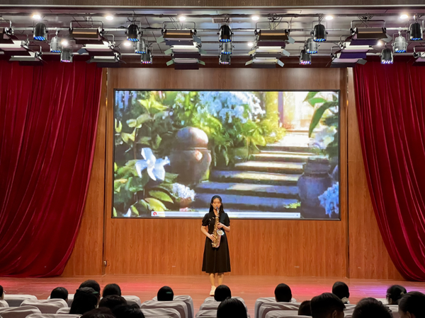 表彰間隙,精彩的文藝表演為大會增添了溫馨氛圍。古箏合奏《聲聲慢》旋律悠揚,傳遞出師恩的綿長;舞蹈《傣風古韻》靈動雅致,展現(xiàn)出多元文化魅力;薩克斯獨奏《茉莉花》與歌曲《錦瑟》《春天的故事》輪番上演,用藝術的語言詮釋著對教師的祝福與敬意。